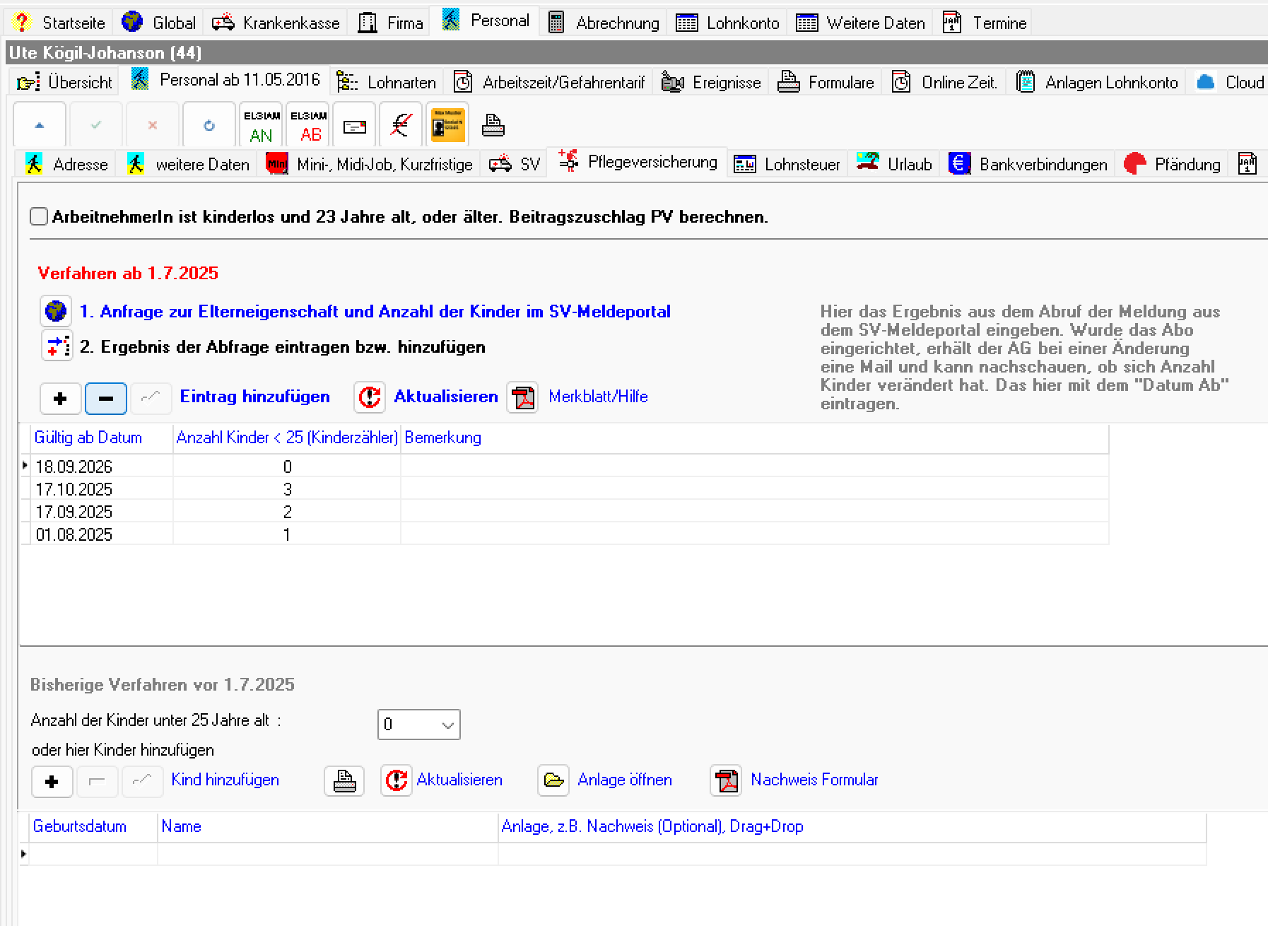 ![]() | Bundle Elster Version 2026 und Lohn Version 11/2025 Neue Versionen Elster 2026 und Lohn 11/2025 Lieferbar ab Oktober 2025 Die bisherige Elster Schnittstelle wird zum 11.11.2025 abgeschaltet. Das Verfahren ELStAM wird um eine Funktionalität bezüglich des Datenaustauschs mit den privaten Kranken- und Pflegeversicherungen, der Finanzverwaltung und Arbeitgebern erweitert. Die KV/PV Funktionalität kommt hinzu. Bei der KV/PV Funktionalität handelt es sich um die automatisierte Datenübermittlung der Beiträge für private Kranken- und Pflegeversicherungen zur Bildung automatisierter Lohnsteuerabzugsmerkmale. Damit wird die bisherige Berücksichtigung der Beiträge der privaten Kranken- und Pflegeversicherungen im Rahmen von Papierbescheinigungen abgelöst. Die neue Elster Version 2026 ist damit schon die endgültige Version für 2026. Damit ist für 2026 kein erneutes Update für Elster notwendig. Ein Update auf Lohn 2026 wird zum Januar notwendig sein. Die Lohn Version 11/2025 enthält nur die geänderte Schnittstelle zu Elster, die Funktionalität zur privaten KV/PV für ELStAM und zur Abrechnung. Elster 2026 und Lohn 11/2025 sind nur im Bundle nutzbar. Das Bundle kann zum Preis von 135 EUR inkl. MwSt. bestellt werden. Im Januar 2026 ist somit keine weitere Bestellung von Elster 2026 notwendig, nur eine neue Lohn Version 2026 wird ab Januar notwendig sein. Diese Änderungen sind aber noch nicht bekannt. Weitere Neuheiten: - Kinderzähler. Es werden nicht mehr die Kinder mit Geburtsdatum usw. hinterlegt, sondern der Kinderzähler mit dem Gültig Ab Datum. Diese Daten werden im SV-Meldeportal abgefragt. Weitere Infos. - Neuer Beitragssatz und Umlagensatz Updater. Neues Format. Ab 11.11.2025 wird nur noch dieses Format zur Verfügung gestellt Für den bisherigen Beitragssatzupdater wird es ab 11.11.2025 keine Aktualisierung geben. - Unter Personal/Lohnarten neue Lohnart Experte für Dienstwagen. Dort können jetzt 2 Fälle (1%Regelung und nach Fahrtenbuch) berechnet werden. Falls nach Fartenbuch, dann muss die Berechnung monatlich erfolgen, falls sich die Anzahl der Arbeitstage in einem Monat ändert. Oder falls sich die km ändern. - Neues Personalblatt drucken. Enthält jetzt die neue ELStAM KV/PV. - Aktuelles SEPA Format bei den Überweisungen. Mindestversion ab Nov. 2025. - Bei Personen ohne bestimmbares melderechtliches Geburtsdatum eine Eingabemöglichkeit. Damit die ELStAM Anmeldung und die Lohnsteuerbesch. gesendet werden können. - Einstellungen. Datenbank. Datenbankwartung. Datenbank Modus Standard und Modus Netzwerkdateisysteme ohne Shared Memory Unterstützung einstellbar. - Lohnsteuer-Anmeldung 2026 neues Feld Nr. 21 - Im Elster Modul Lohnsteuerbescheinigung, Stornofunktion. Im Ausnahmefall, falls es notwendig ist : Es kann eine gesendete (grün) Lohnsteuerbescheinigung mit der rechten Maustaste angeklickt werden und storniert werden.